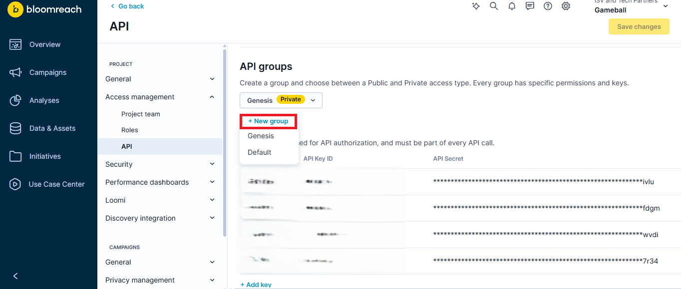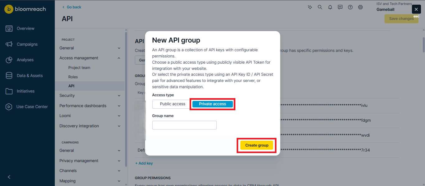 Create a Private API Group in Bloomreach