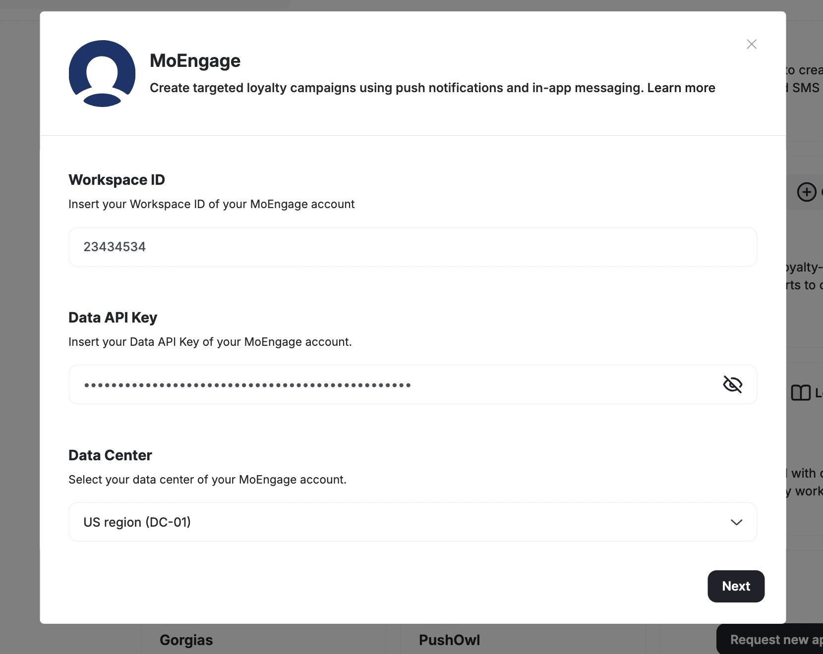 Go to the App Store on Gameball’s dashboard and select MoEngage from the list of available app integrations.