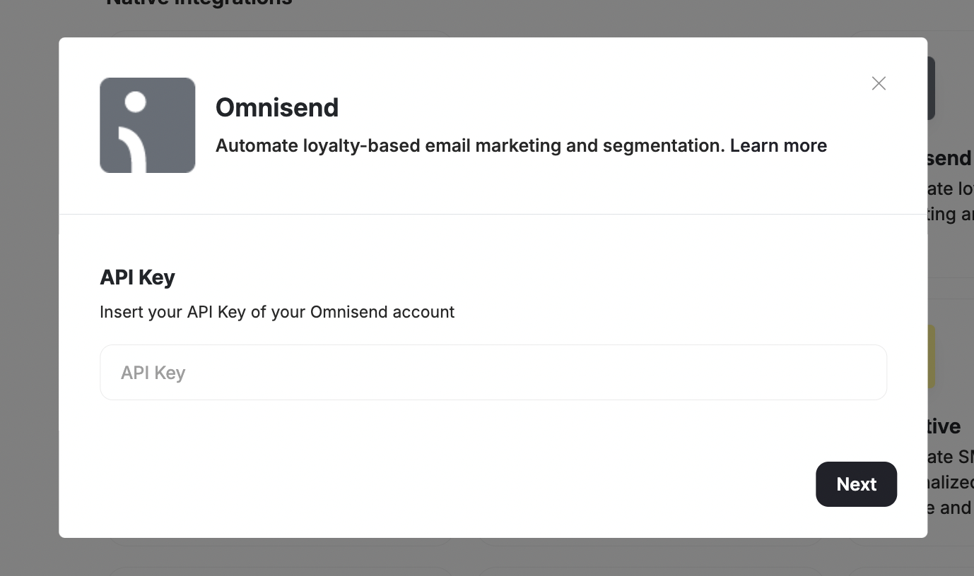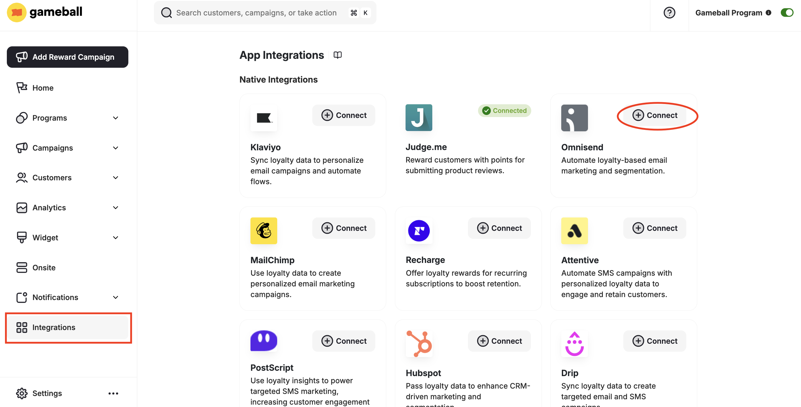Go to Integrations on your Gameball Admin Dashboard and click Connect under Omnisend.