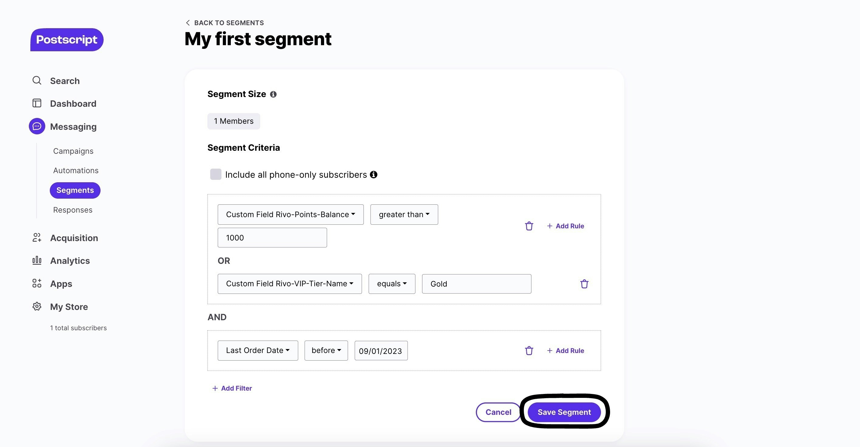 - Segment for Targeted Campaigns - Use Gameball properties to create specific customer segments in Postscript.