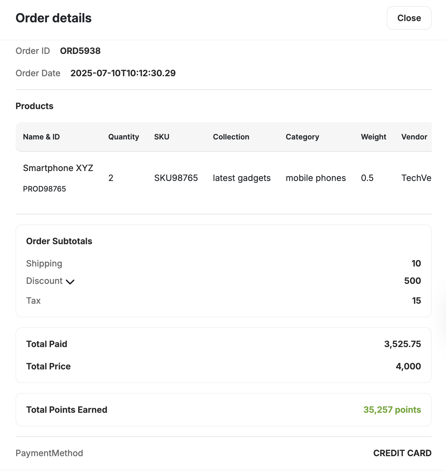 If you need to integrate points redemption or coupon codes with your order submission, refer to these detailed guides:Points Redemption