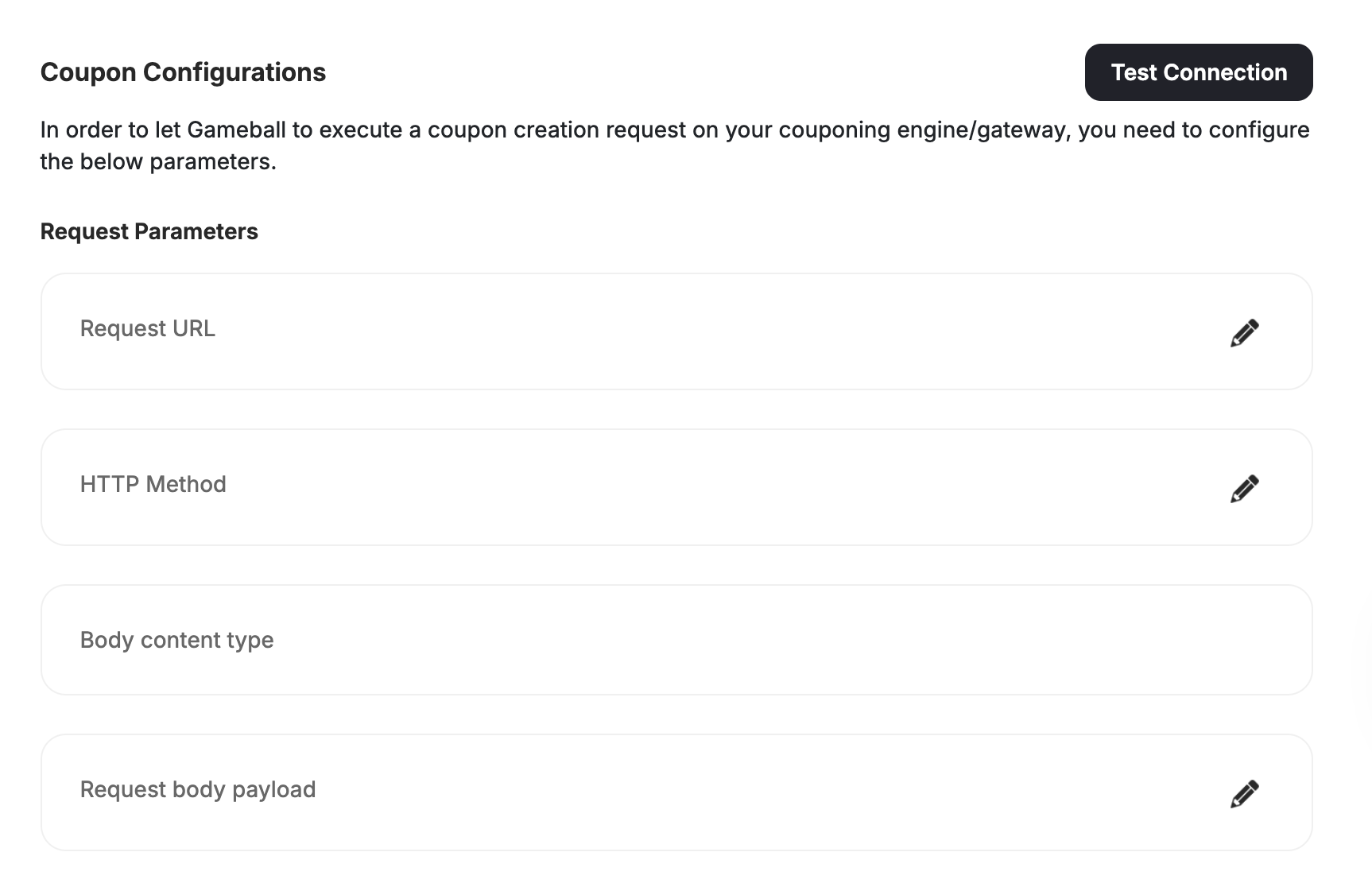 | Use “Test Connection” from Gameball dashboard to simulate coupon creation. | Same. Useful for debugging or dry-run integration. |